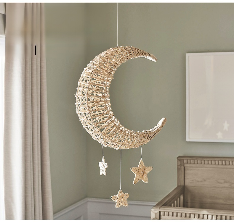Adorno de luna y estrella de mimbre